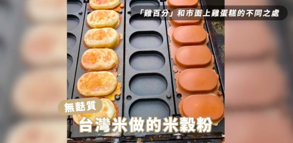 為了讓所有人都能安心品嚐雞蛋糕的美味,雞百分做了一個大膽的決定:捨棄傳統麵粉,改用100% 台灣優質米穀粉作為基底食材。這看似簡單的替換,卻是成就健康與美味的關鍵:
